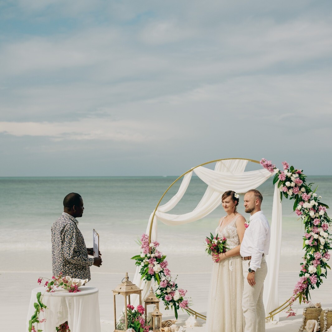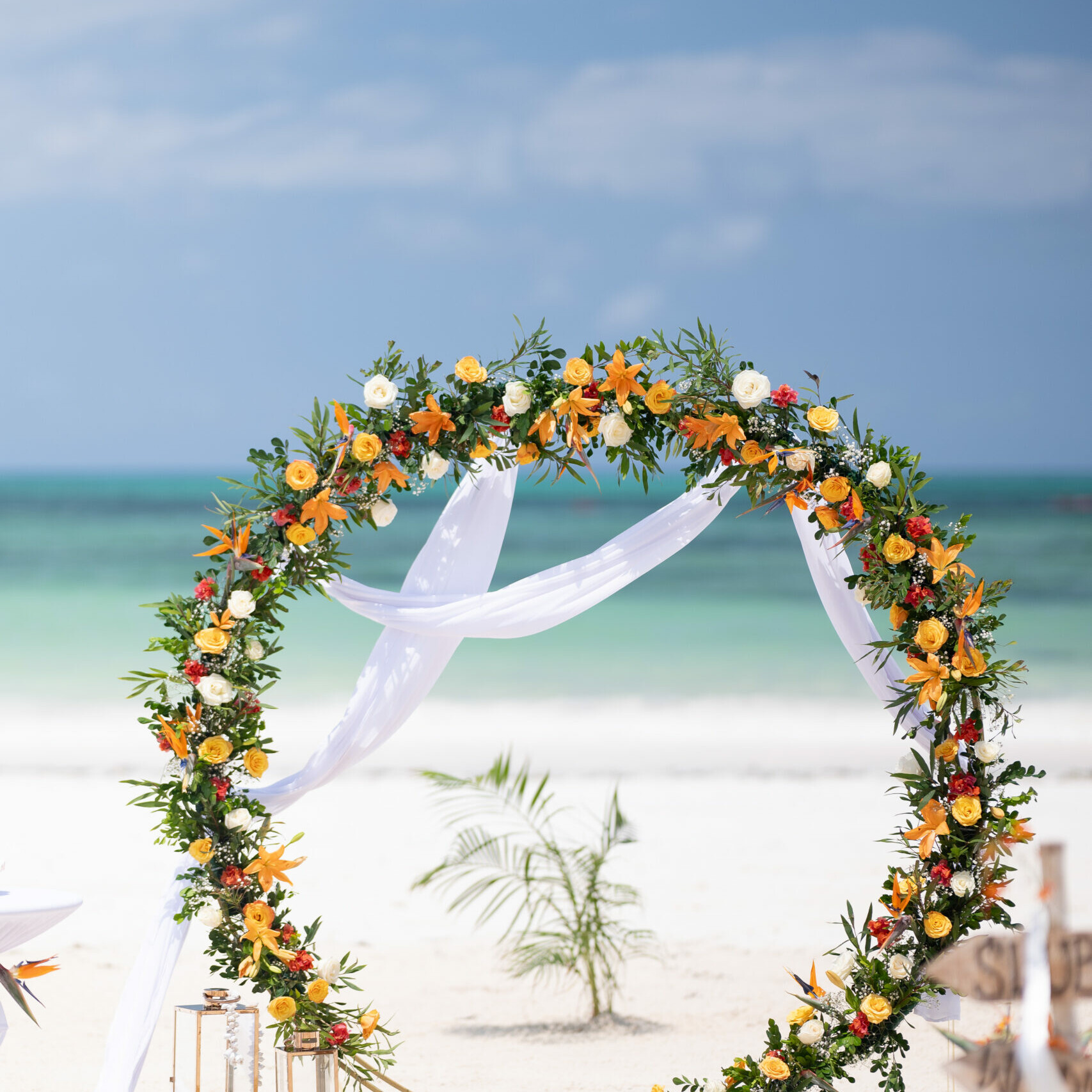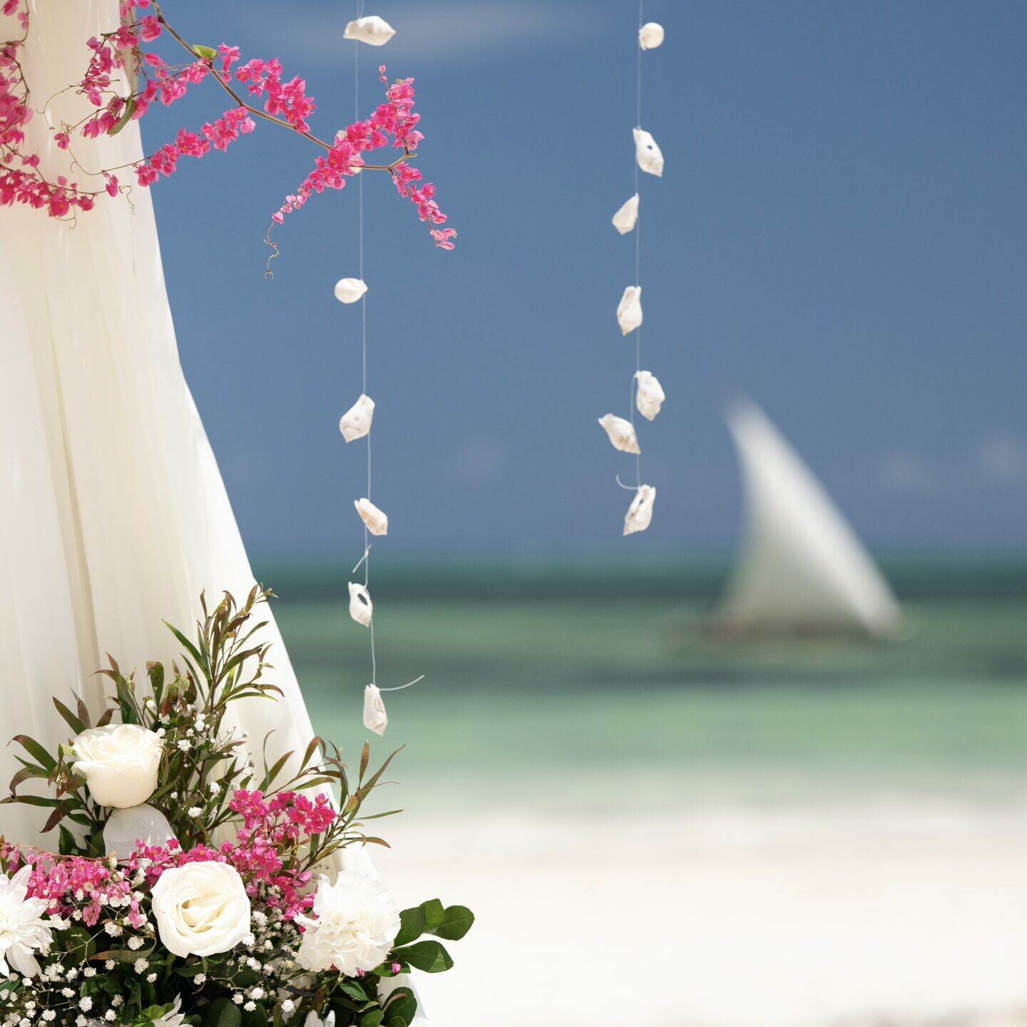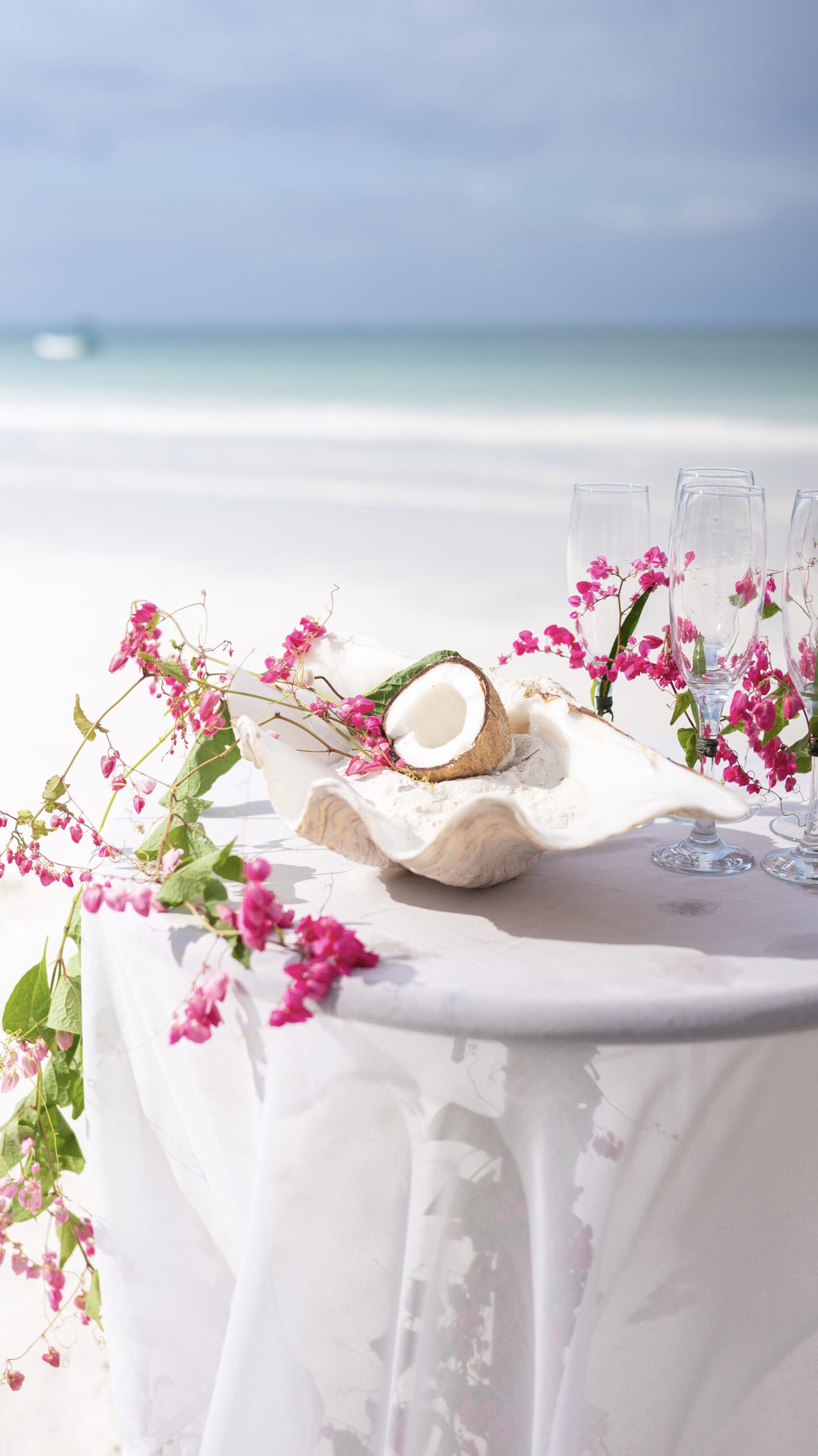 A wedding gazebo on the beach, adorned with garlands of fresh, tropical flowers, and a Masai procession that will lead you to the altar. Their dance and incredible singing will make the ceremony extraordinary and even more memorable.