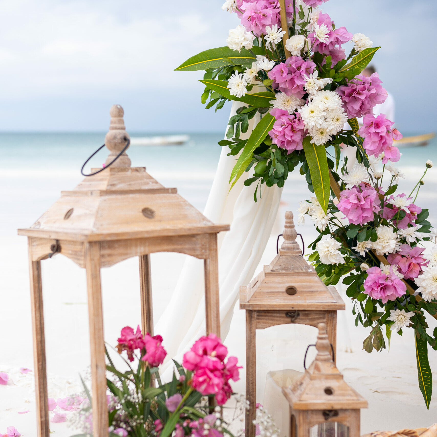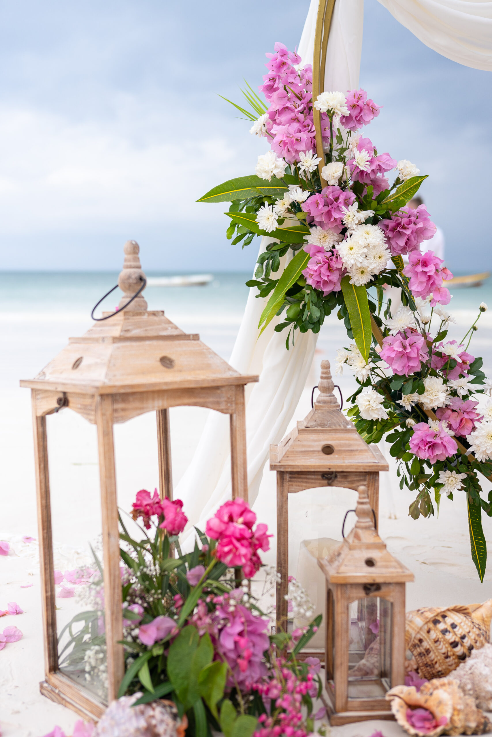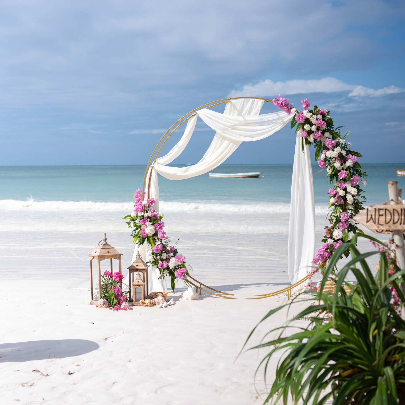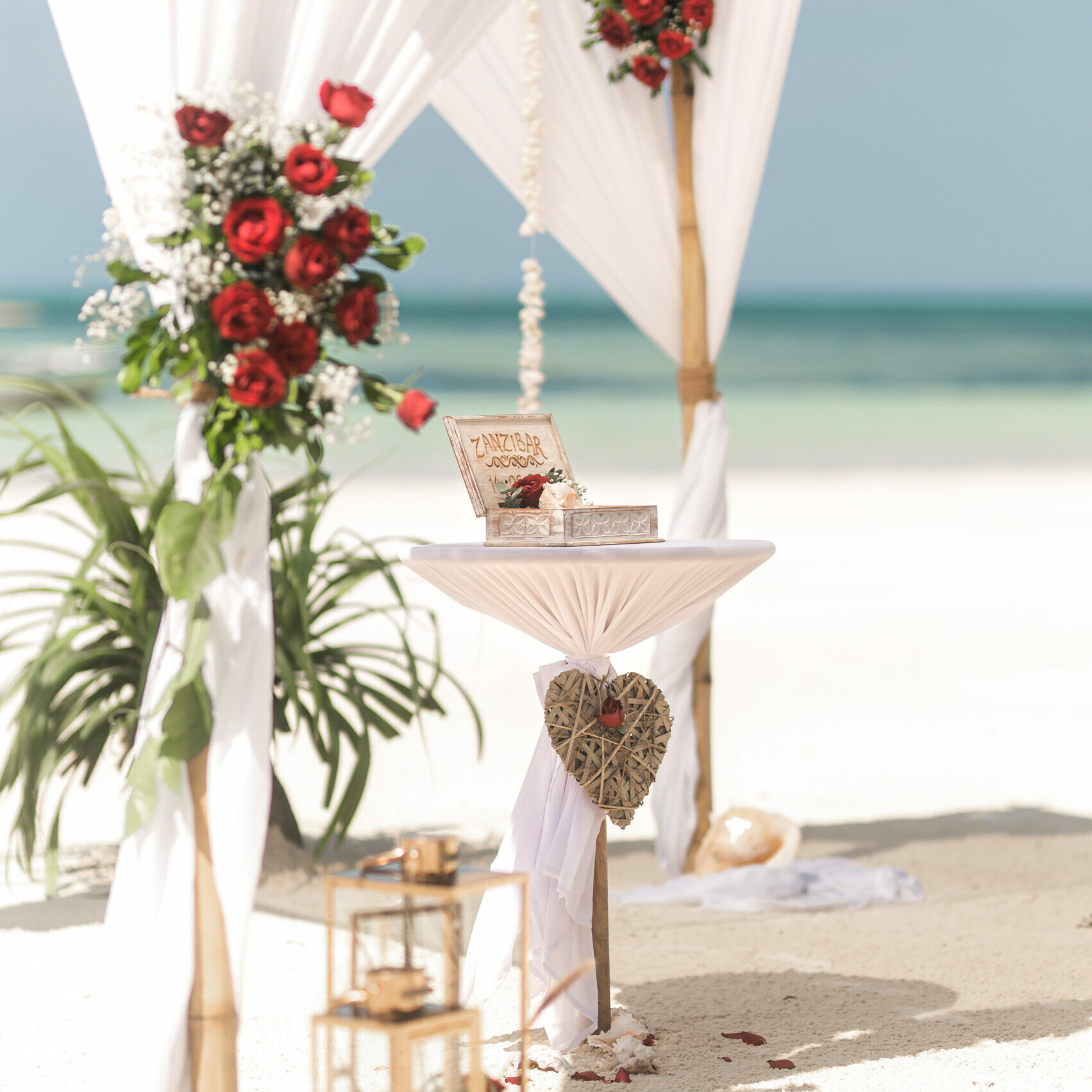 A wedding gazebo on the beach, adorned with garlands of fresh, tropical flowers, and a Masai procession that will lead you to the altar. Their dance and incredible singing will make the ceremony extraordinary and even more memorable.