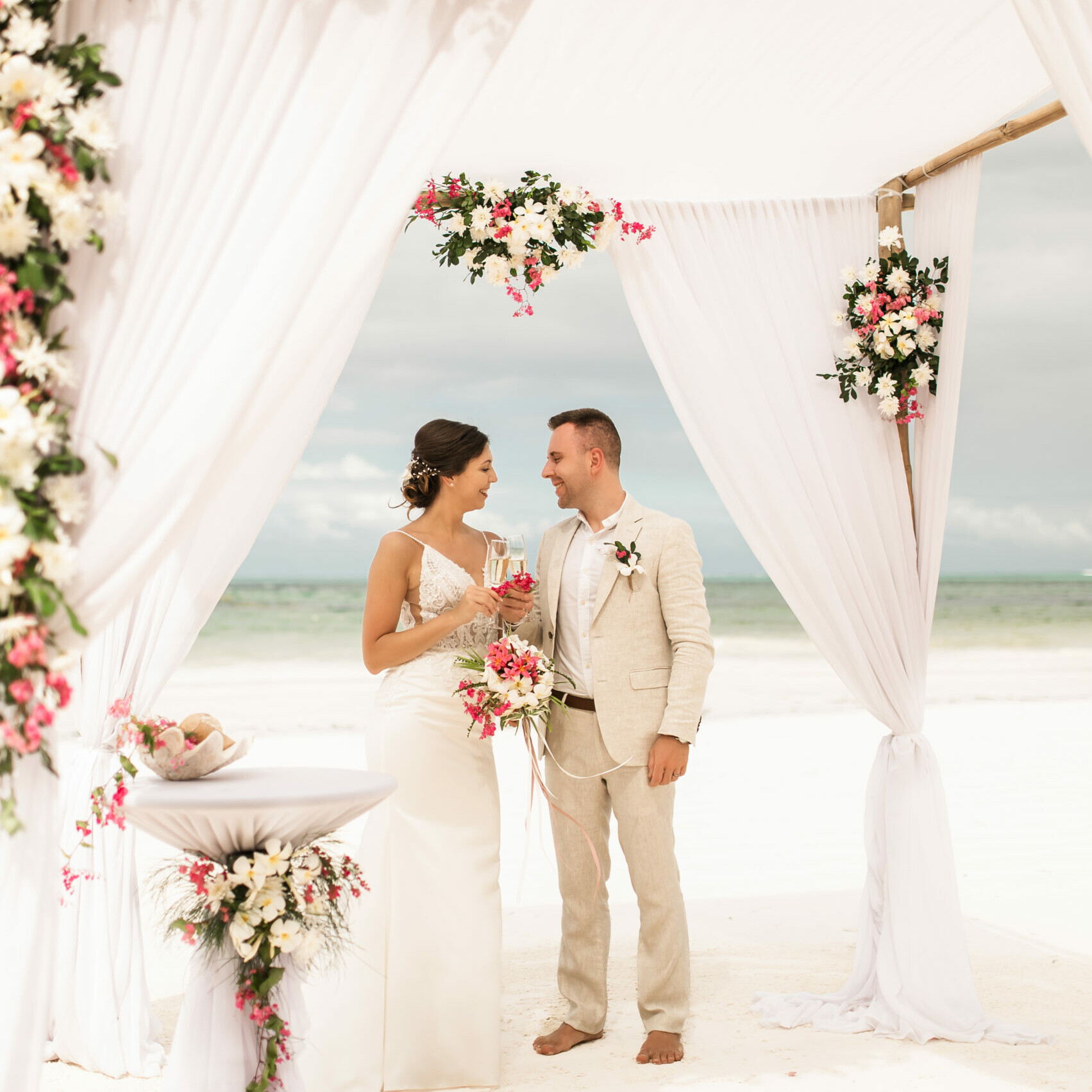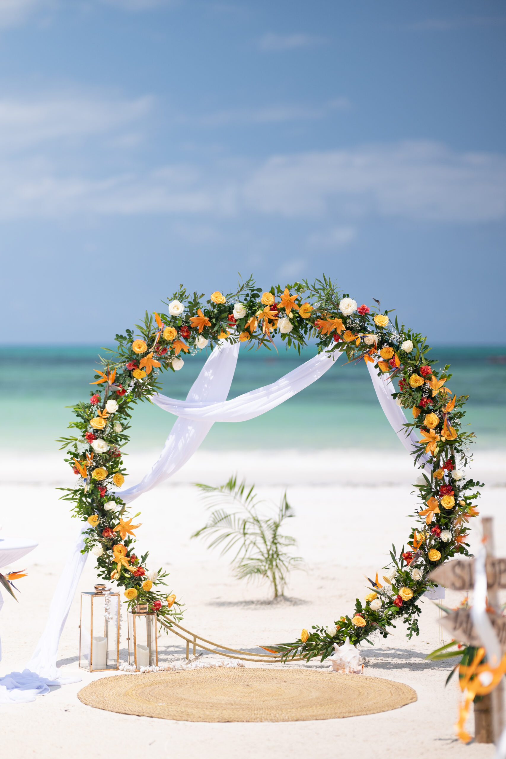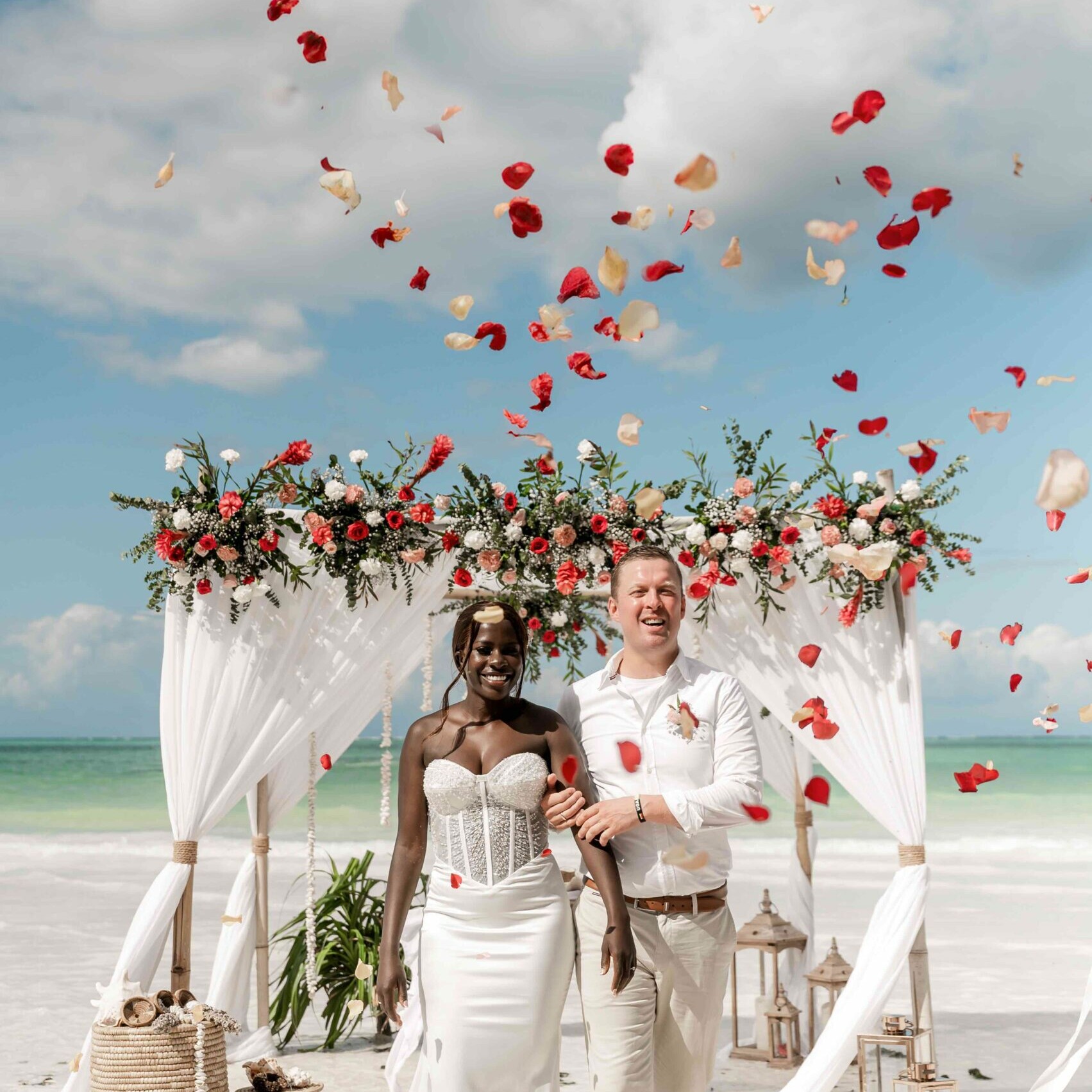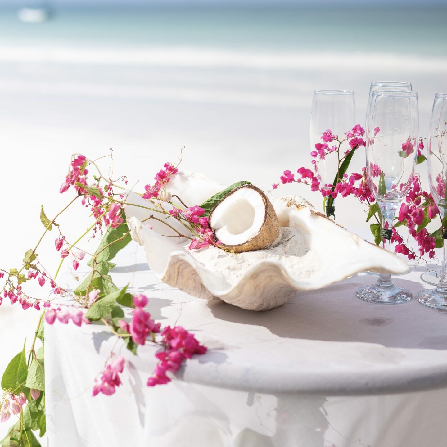 A wedding gazebo on the beach, adorned with garlands of fresh, tropical flowers, and a Masai procession that will lead you to the altar. Their dance and incredible singing will make the ceremony extraordinary and even more memorable.