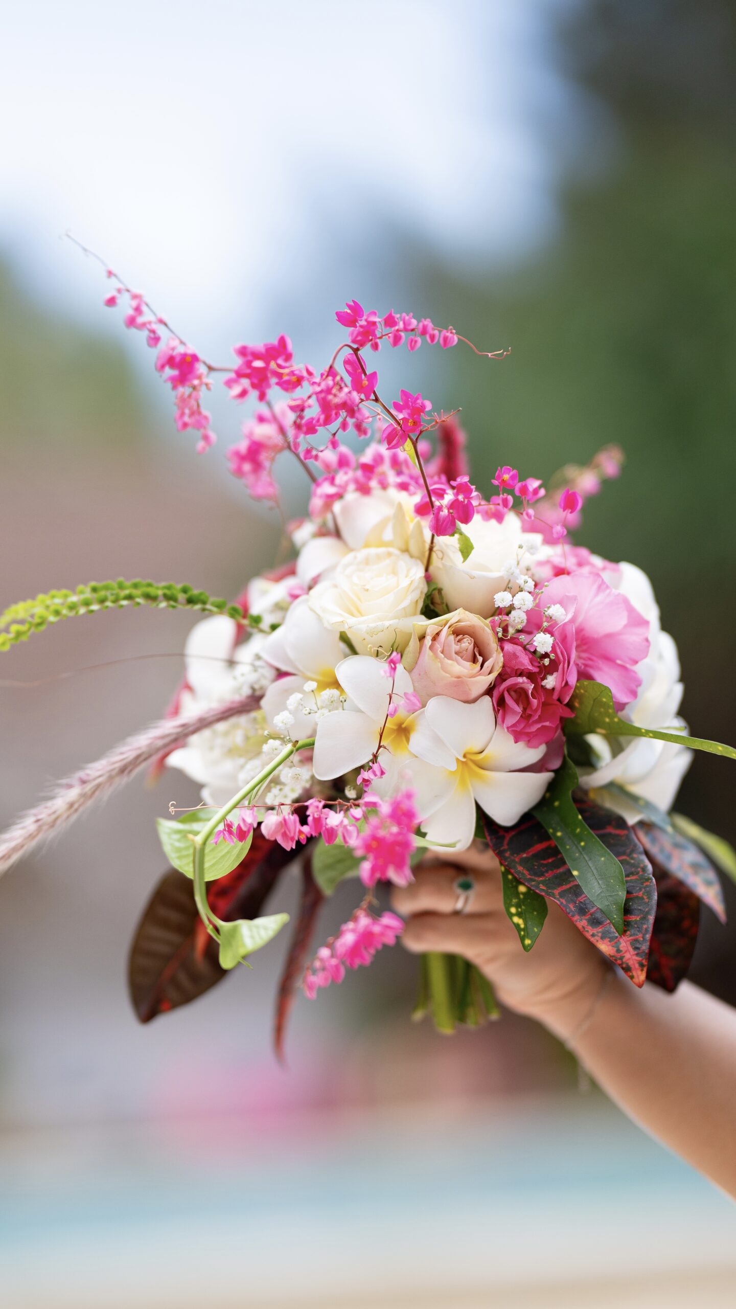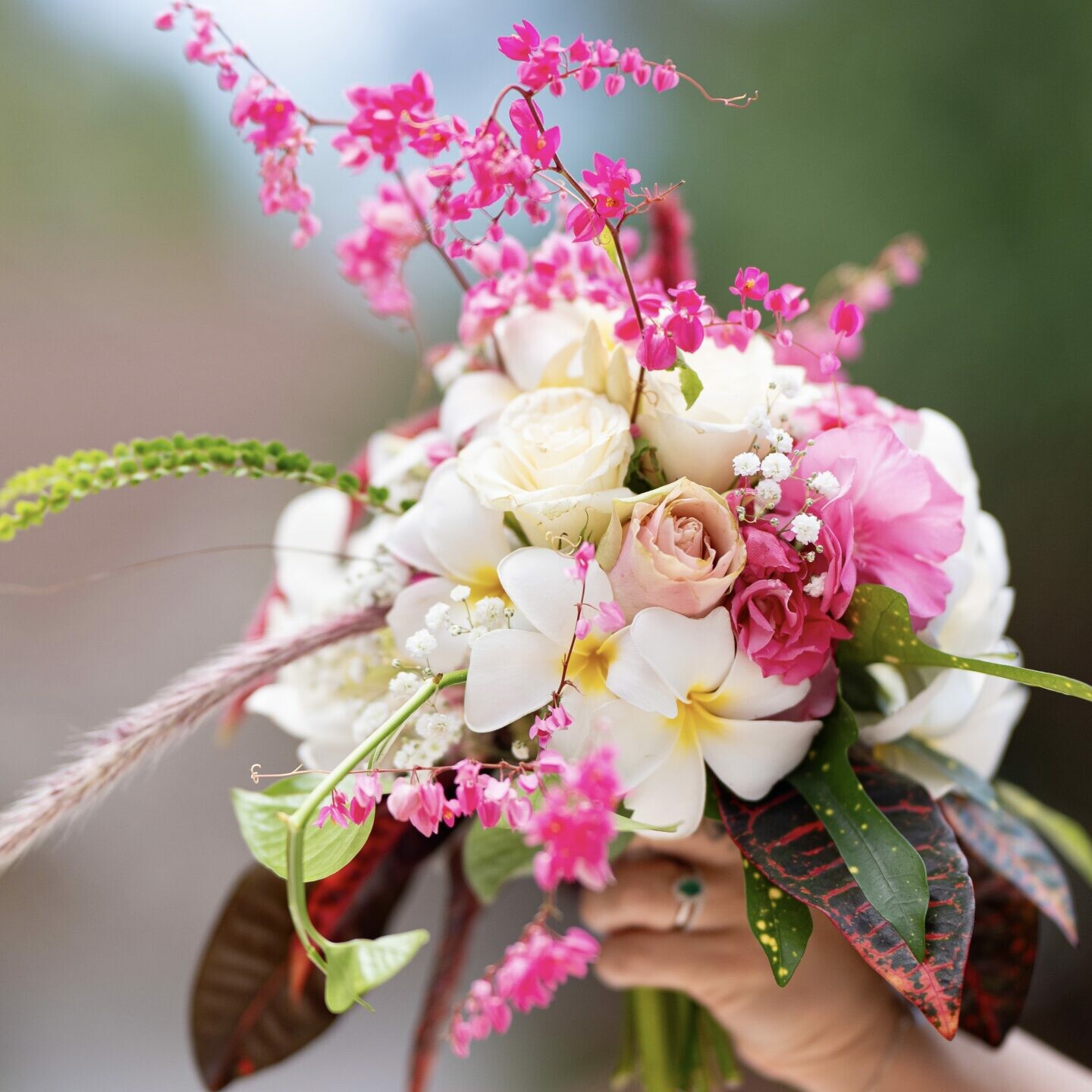 - A bouquet and a buttonhole for the groom, made from local flowers.
