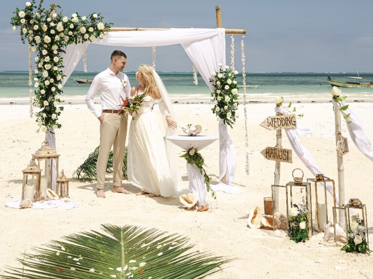 Piaszczysta plaża, a w tle turkus oceanu. To idealna sceneria dla wymarzonego ślubu.